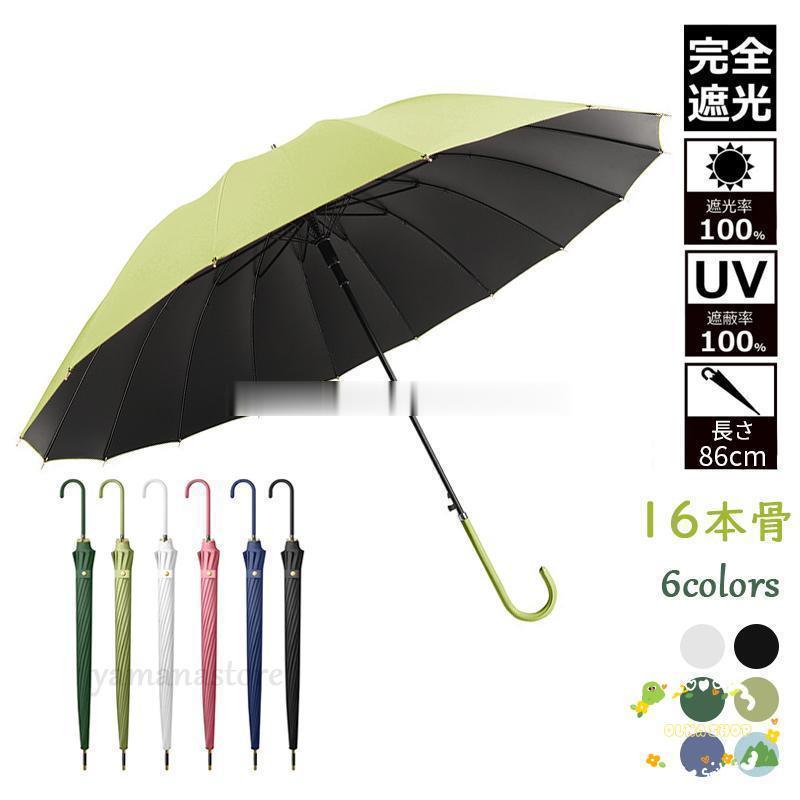 16本骨傘 折れにくい 竹ハンドル 晴雨兼用 日傘 長傘 おしゃれ ワンタッチ グラスファイバー傘 撥水 耐風傘 UVカット かわいいかさ 通勤 通学用 軽量