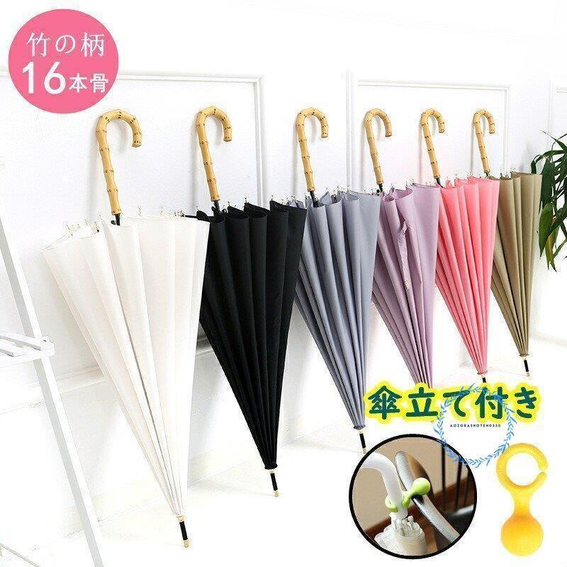 傘 レディース 大きめ バンブーハンドル 雨傘 ジャンプ傘 長傘 16本骨傘 折れにくい 竹ハンドル おしゃれ