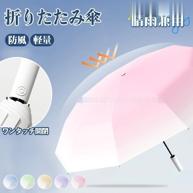 折りたたみ傘 レディース 傘 日傘 雨傘 晴雨兼用 10本骨 グラデーション カラフル パステルカラー ワンタッチ開閉 大きめ 日焼け防止 耐風 丈夫 雨具 軽量
