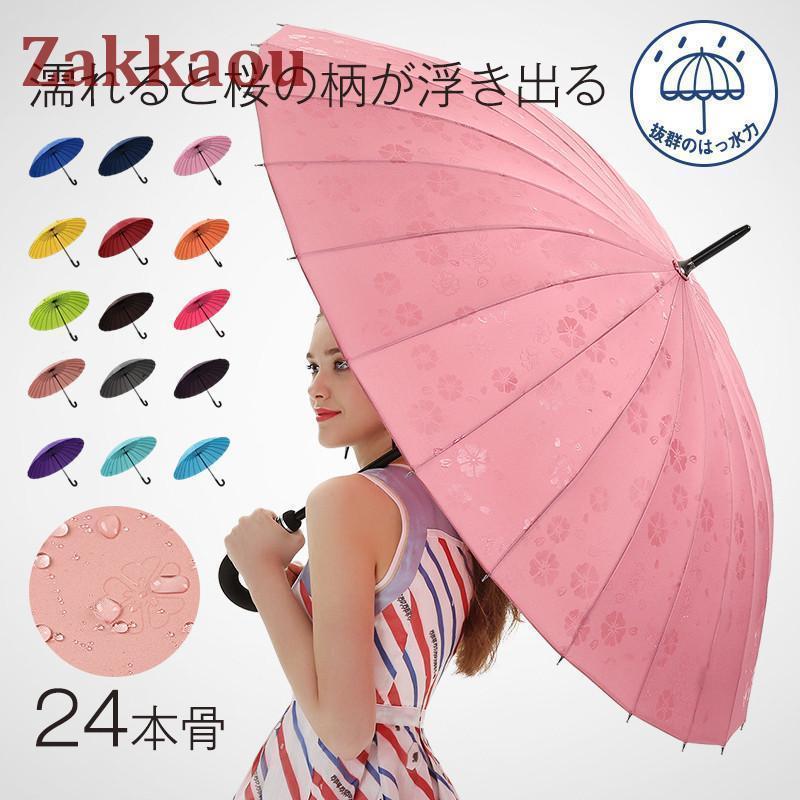長傘 レディース メンズ 24本骨 日傘 無地 撥水 濡れると桜の柄が浮き出る 軽量 梅雨対策 ビジネス 通勤 ワンタッチ ジャンプ傘 大きめ 通学