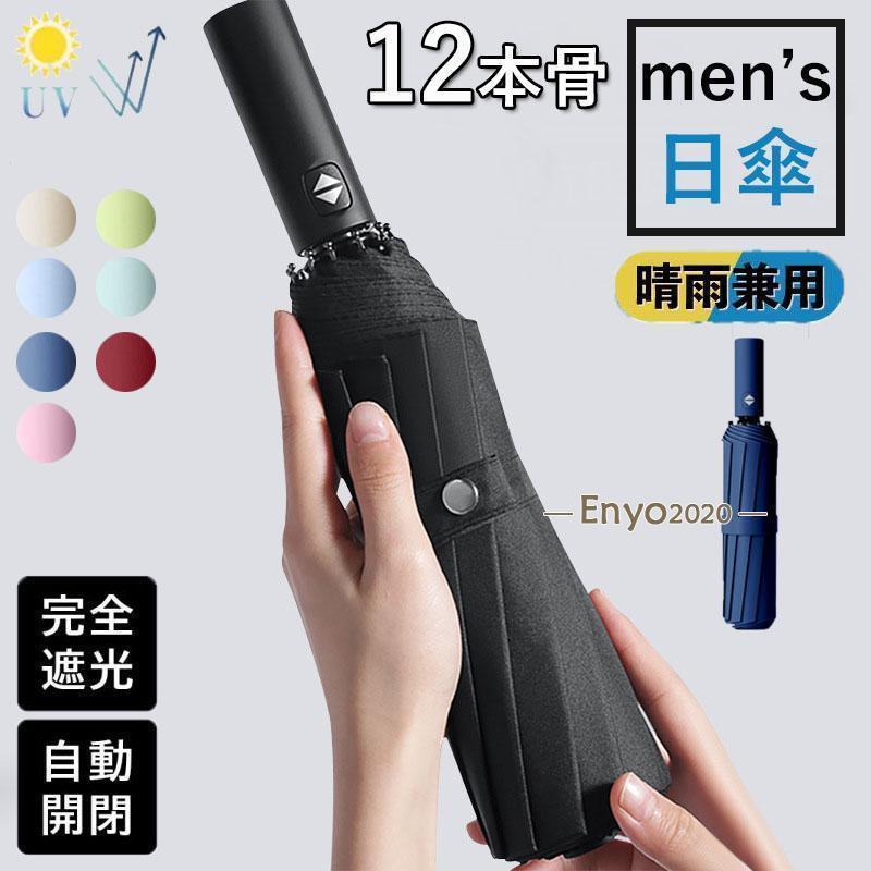 日傘 メンズ 完全遮光 遮光率99% 自動開閉12本骨 耐風 折りたたみ傘 折り畳み かさ 撥水 傘 丈夫 おしゃれ 男性 暑さ対策 梅雨対策 熱中症対策 紳士用