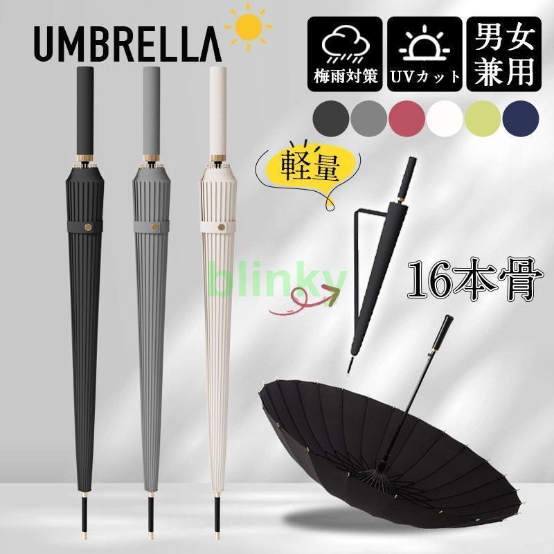 雨傘 長傘 レディース メンズ 16本骨 通勤 通学 軽量 長柄 日傘 おしゃれ 梅雨 頑丈 大きめ 耐風傘 カット 撥水 高温対策