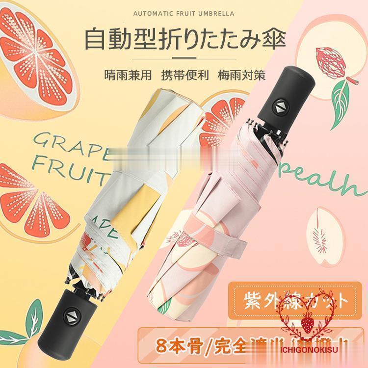 日傘 折りたたみ傘 レディース おしゃれ 完全遮光 遮熱 ワンタッチ 果物プリント カット 晴雨兼用傘 雨傘 三段折りたたみ 軽量