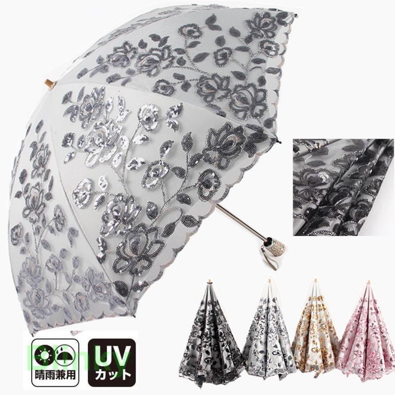 レース 日傘 折りたたみ傘 レディース おしゃれ 晴雨兼用 2段折りたたみ傘 花柄 レース刺繍日傘 雨傘 紫外線対策 遮光 遮熱 UVカット
