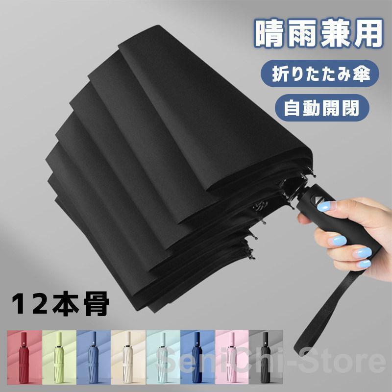 折りたたみ傘 メンズ 雨傘 晴雨兼用 男女兼用 折り畳み傘 UVカット ワンタッチ 自動開閉 撥水加工 日傘 風に強い 梅雨対策 12本骨