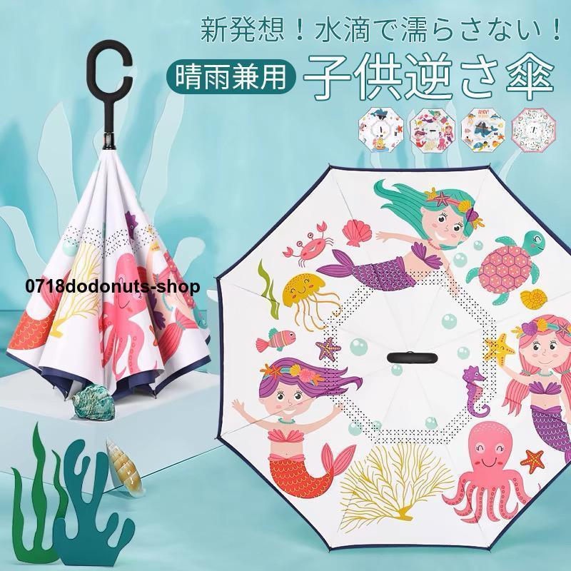 子供 逆さ傘 傘 逆さ 逆さま傘 濡れない 二重傘 晴雨傘 梅雨 長傘 無地 長柄傘 雨晴兼用 キッズ 男女兼用 かさ UVカット 耐風 風に強い 大きめ 自動式
