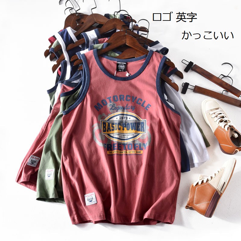 タンクトップ メンズ プリント ロゴ 英字 インナー Tシャツ ノースリーブ バスケ トップス スポーツ 男性 エゴ 夏用 綿 コットン かっこいい ファッション ジム 薄手 おしゃれ