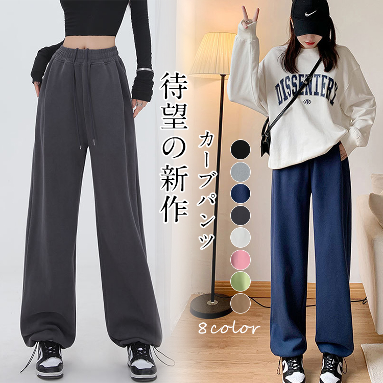 春秋3タイプ カーブパンツ バレルレッグパンツ ゆったり リラックス 着痩せ 脚長効果 美脚ライン ワイド カーブパンツ 吸汗性に優れた素材 トレーニングパンツ