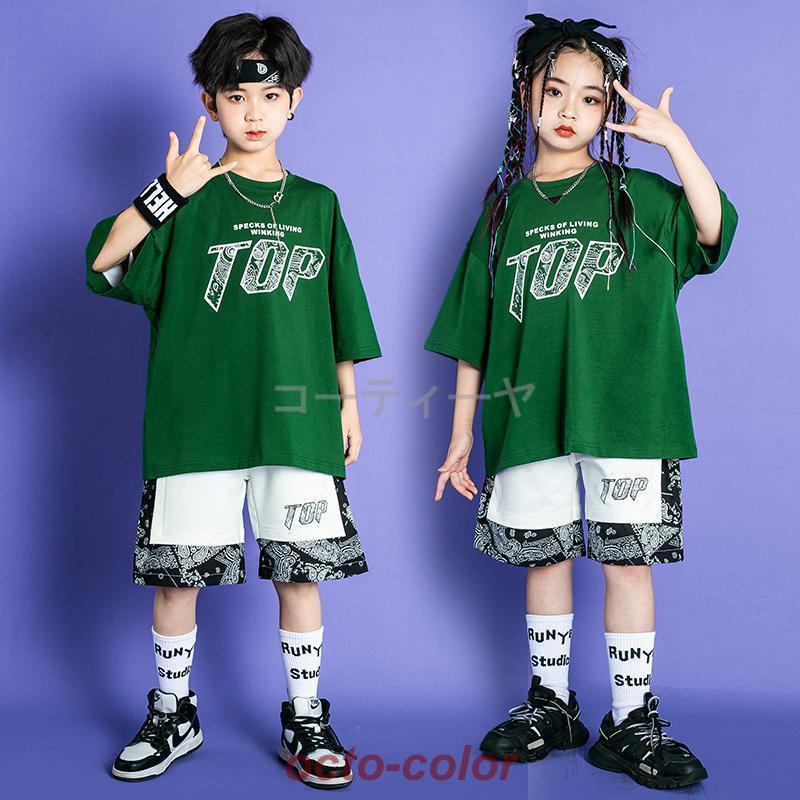 キッズダンス衣装 トップス セットアップ tシャツ ビッグシルエット ショート丈 迷彩パンツ ヒップホップ ジュニア 男の子 韓国 発表会 演出服 女の子