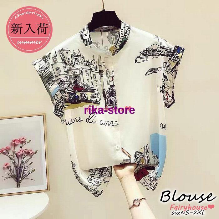 ブラウス レディース 40代 春夏新作 オシャレブラウス きれいめプリント シフォンブラウス 半袖トップス 韓国風 大人上品 ゆったりシャツ 30代 50代 通勤OL