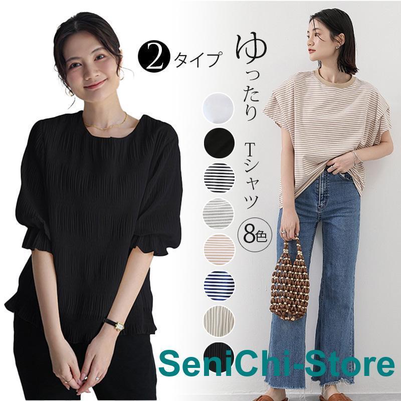 シャツ ブラウス ボーダー tシャツ 半袖 レディース シャツブラウス フレンチ スリーブ プルオーバー カットソー 綿 ボーダーシャツ クールネック