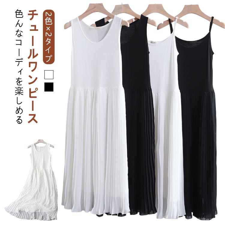 ロング ワンピース チュールワンピース レディース インナーワンピース チュール レース タンクトップワンピース キャミソール ワンピース キャミワンピ キャミソールワンピ ロング丈