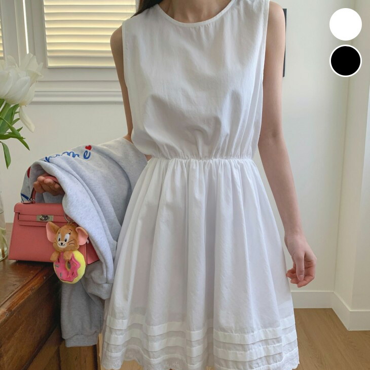 レース ノースリーブ ワンピース ワンピ ミニワンピ シンプル 無地 裾ボーダーラインレディースファッション ワンピース