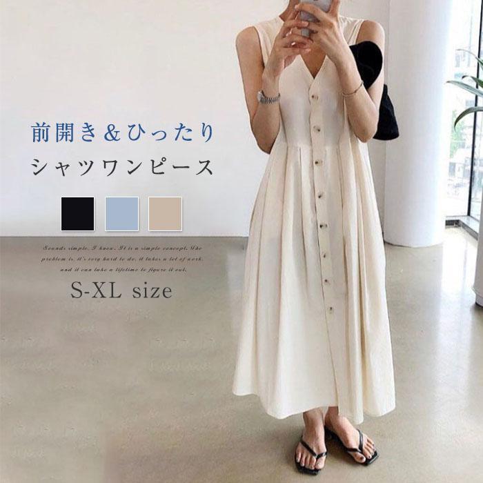 ワンピース シャツワンピース レディース 2着方 夏 ノースリーブ きれいめ ロング丈 カジュアル 前開き おしゃれ ロングワンピース