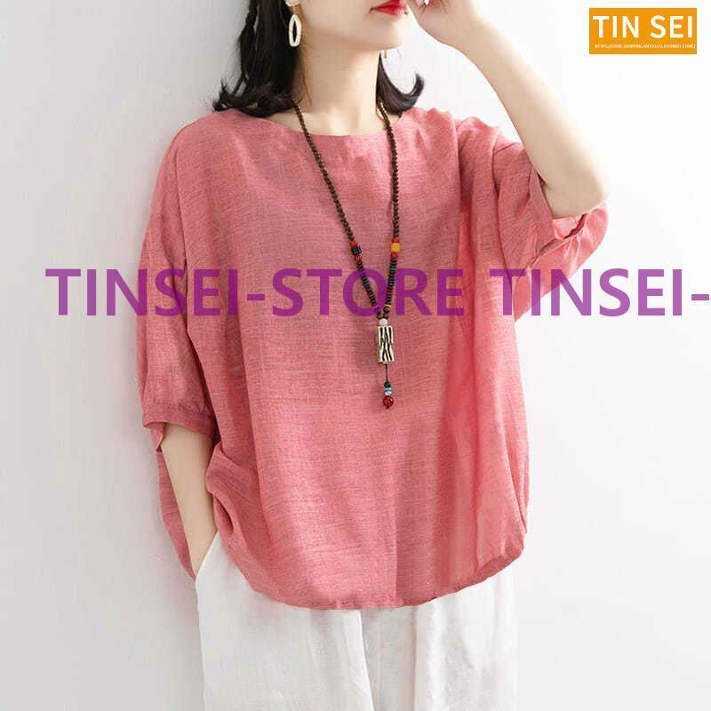 ブラウス Tシャツ レディース 綿麻混風 シャツ プルオーバー トップス tシャツ カットソー コットンリネン おしゃれ 夏 ゆったり 30代 40代 50代 ママコーデ