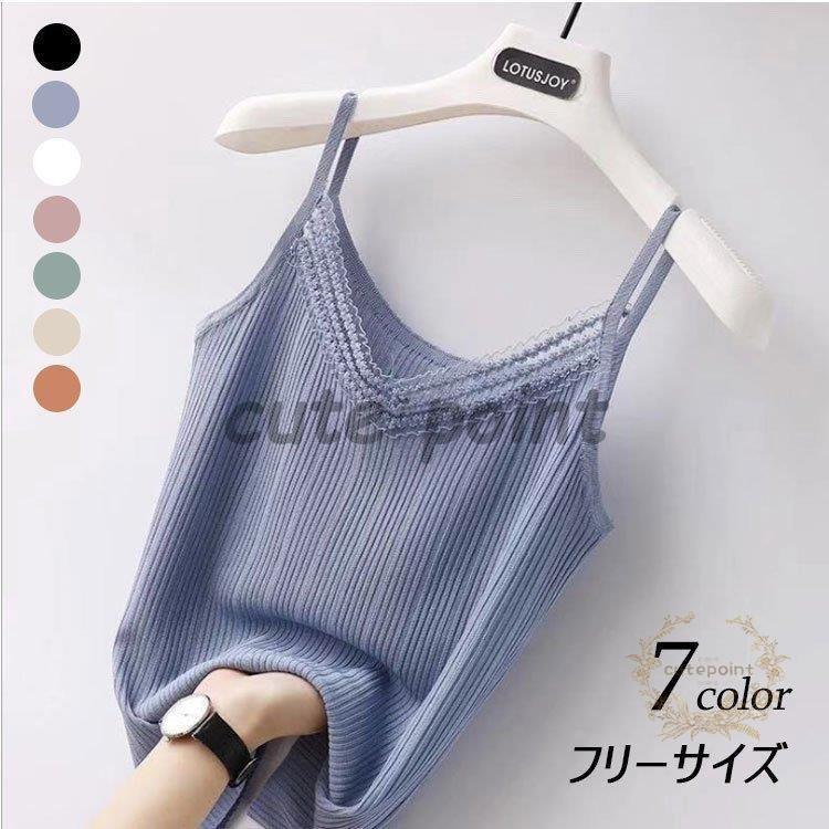 タンクトップ Vネック レディース 春夏 綿 キャミソール 白 黒 ニット インナー 大きいサイズ 20代 30代 40代 韓国風 ゆったり ピンク 緑 青 紫 赤