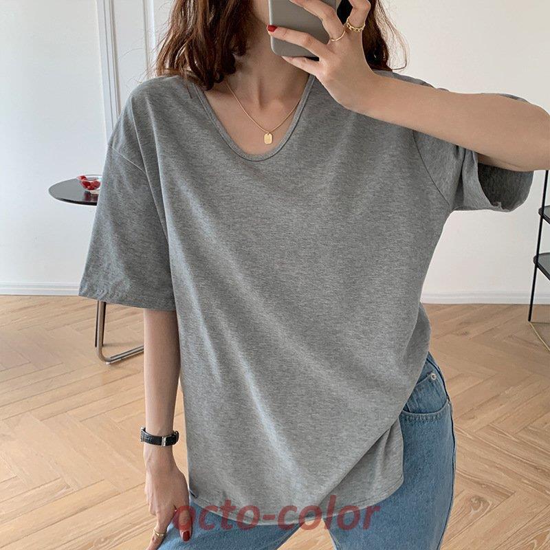 レディース カットソー Vネック 2021夏新作 半袖tシャツ カジュアル 大きいサイズレディースファッション トップス Tシャツ 無地