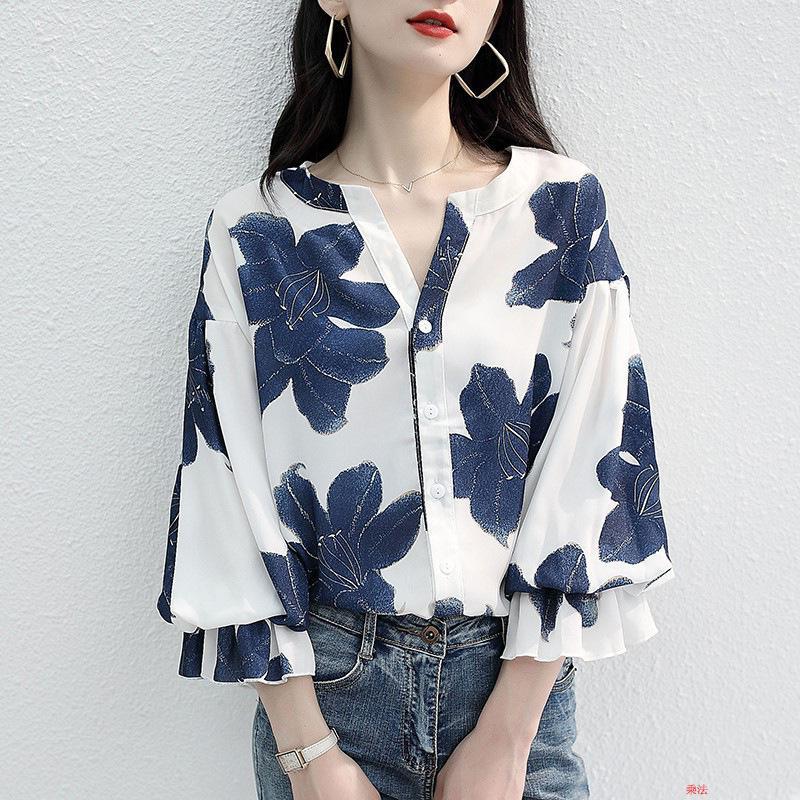 ブラウス レディース おしゃれ 40代 春夏 花柄 パフスリープシャツ 五分袖 シフォン オフィス フォーマル 韓国風 通勤 大人 上品 トップス