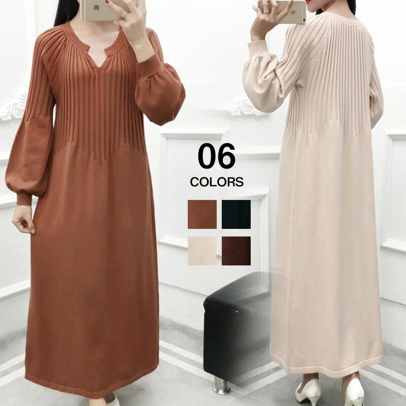 ニットワンピース Vネック チュニック ニットワンピ ロングワンピ ワンピース レディース 秋冬 ロングセーター ゆったり 楽ちん シンプル ニット 大きいサイズ