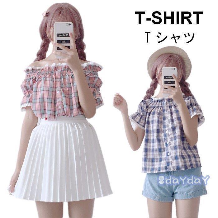 Tシャツ レディース おしゃれ キレイめ スッキリ ゆったり 半袖 シンプル チェック柄 可愛い フリル トップス 夏新作 通学