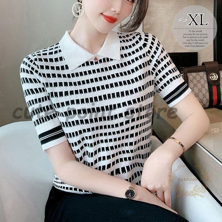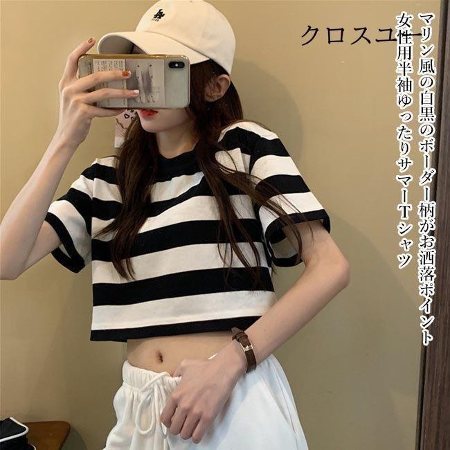 シャツ 半袖 レディース ボーダー柄シャツ 夏 半袖シャツ ショート サマーシャツ 縞柄 カットソー クルーネック ボーダー柄 ゆったり