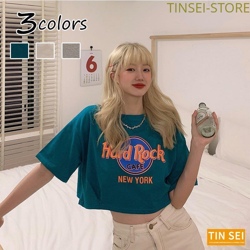 Tシャツ 半袖 ガーリー 韓国 原宿系 無地 ファッション レディース トップス カジュアル スポーティー ヒップホップ ダンス ストリート風 BF風