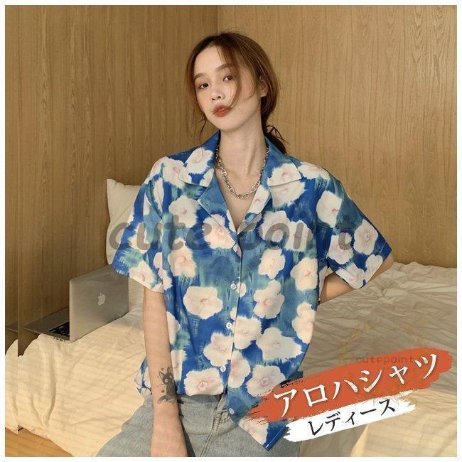 レディース シャツ アロハシャツ 半袖 花柄 ブラウス ハワイシャツ 夏 トップス プリント 体型カバー リゾート 旅行 おしゃれ ビーチウェア
