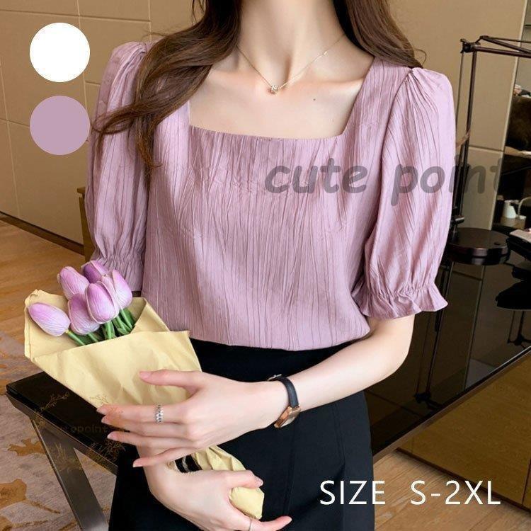 ブラウス レディース 40代 春夏 新作 韓国風 スクエアネック 白 シフォン シャツ 半袖 トップス 大人 通勤 おしゃれ 30代 50代 ゆったり