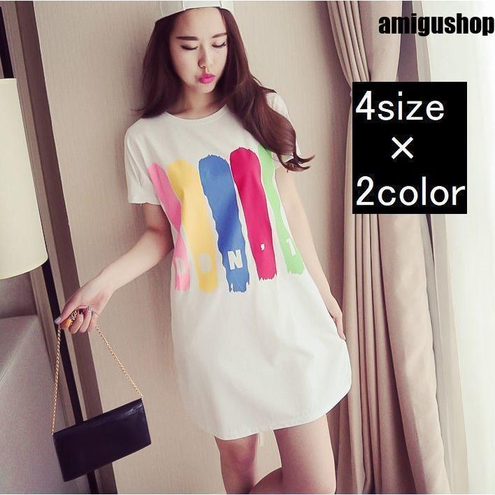 ミニワンピース Tシャツワンピース 半袖 レディース トップス ショート丈 丈短め チュニック風 Aライン ロンT 丸首 ラウンドネッ ロングTシャツ