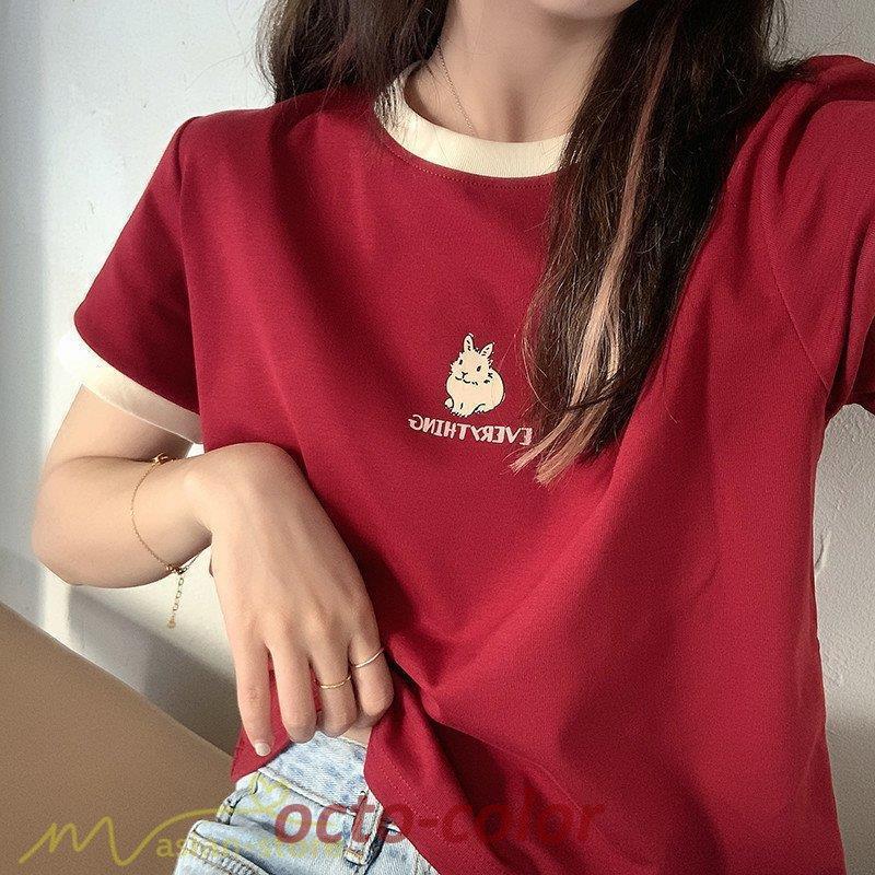 シャツ カットソー レディース 夏新作 コーデ 着痩せ クルーネック 半袖 プリント 配色切替 大きいサイズ カジュアルシャツ 着回し お出かけ 大人 サマー風