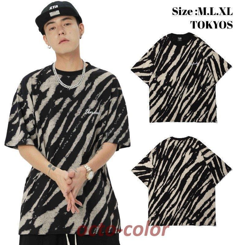 Tシャツ メンズ ストリートファッション 大きいサイズ ビッグ 半袖 b系 ダンス オシャレ 衣装 HIPHOP レッスン着 レディース 春夏 ゼブラ 大人
