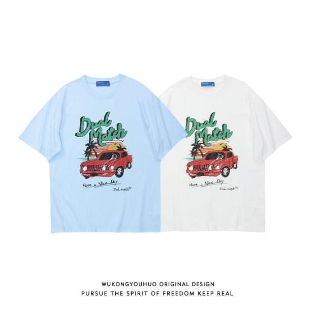 Tシャツ メンズ ビッグシルエット オーバーサイズ レトロサーフプリント 韓国ファッション ブランド レディース ストリート系
