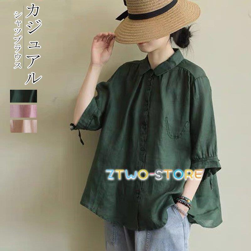 リネンシャツ 綿麻ブラウス 夏新作 レディース 薄型 綿麻 半袖シャツ トップス 無地 体型カバー 大きいサイズ 腕カバー 涼しい ゆったり