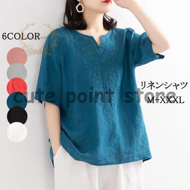 リネンシャツ 綿麻ブラウス 夏新作 レディース 薄型 綿麻 半袖Tシャツ トップス 無地 体型カバー 大きいサイズ 腕カバー 涼しい ゆったり