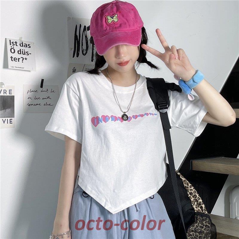 Tシャツ レディース 半袖 へそ出し ショート丈 トップス ショートタンクトップ 春夏秋 ゆるい 原宿系ヒップホップ ダンス ストリート風 韓国ファッション