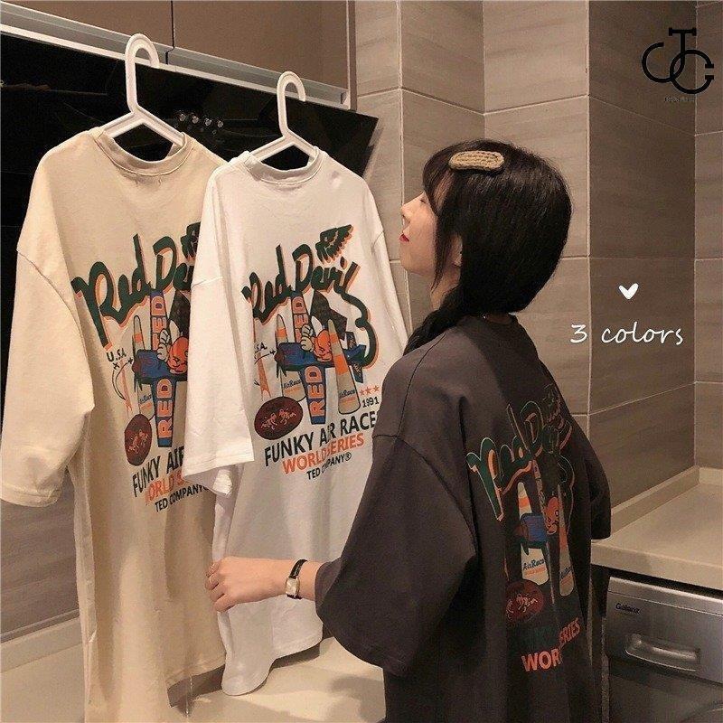 Tシャツ レディース 半袖 夏 ゆるい トップス 韓国ファッション 原宿系 BF風 ヒップホップ ストリート風 カジュアル カップル服 ダンス