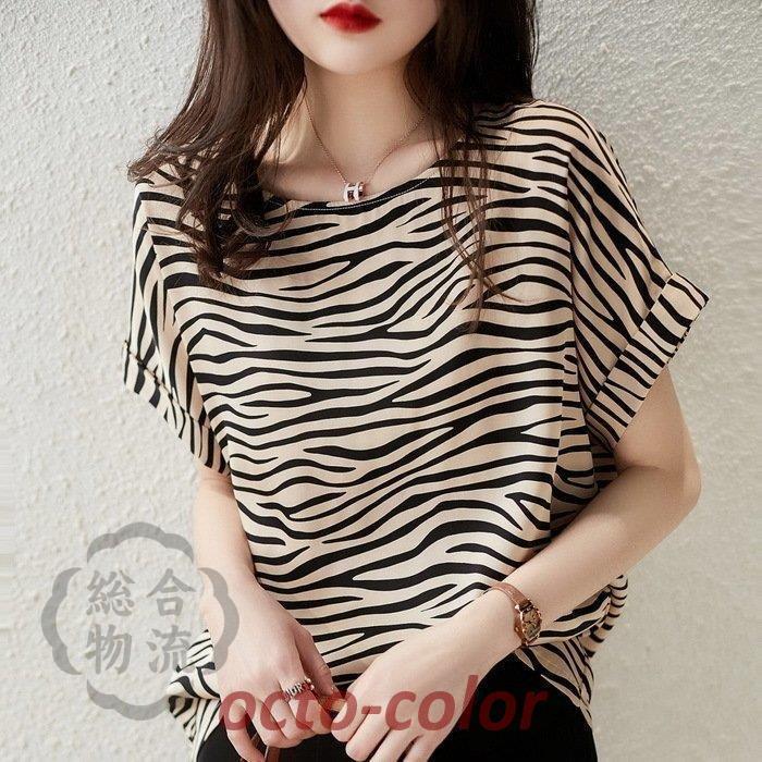 ブラウス レディース 40代 春夏 オシャレブラウス シフォンブラウス おしゃれ ゼブラ柄 上品 Tシャツ 半袖トップス カジュアル ゆったりtシャツ 30代 50代 通勤