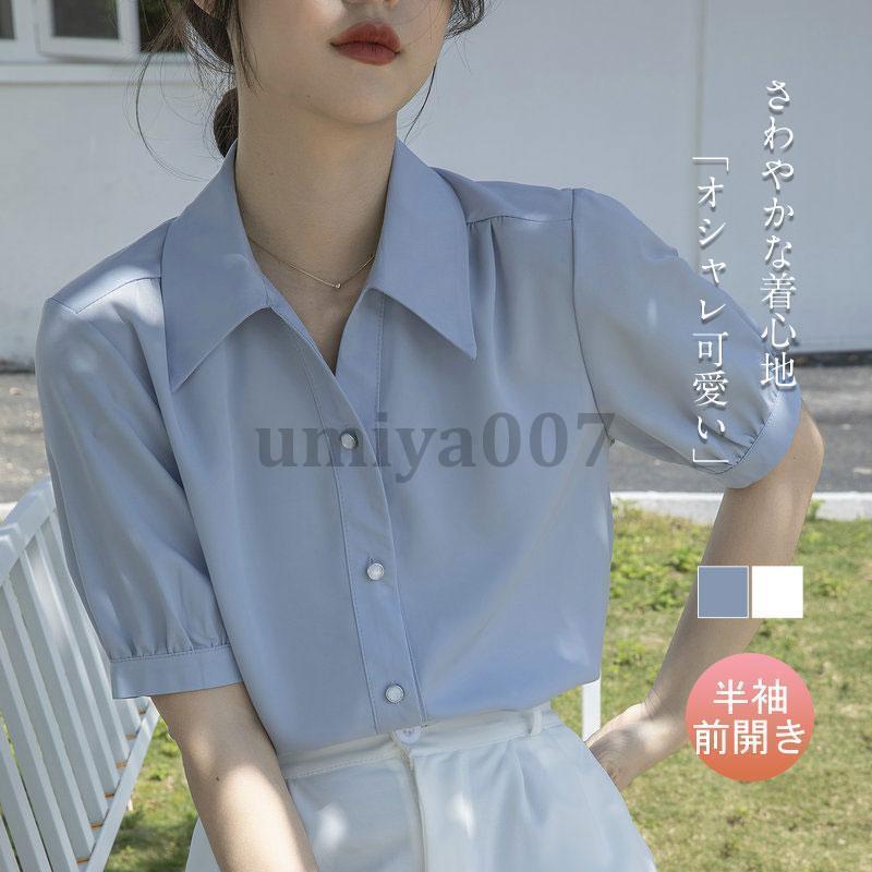 ブラウス レディース 夏 シフォン シャツ 半袖 襟付き オフィス トップス きれいめ ゆったり シンプル 通勤 着痩せ おしゃれ 柔らかい