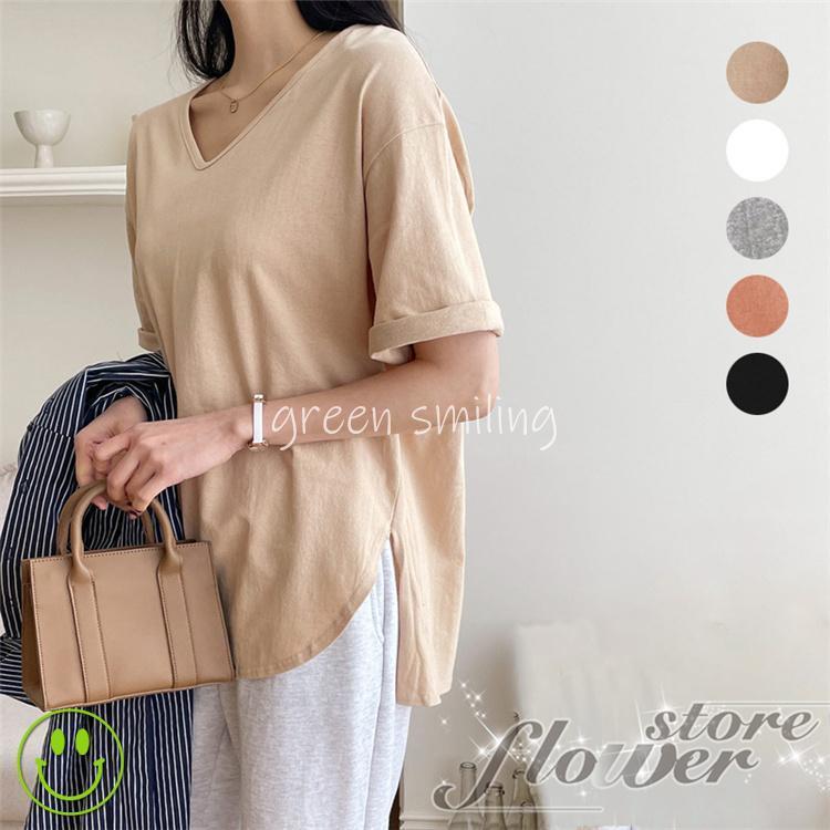 シャツ レディース 春 夏 半袖 クルーネック 無地 カットソー トップス カット ゆったり おしゃれ カジュアル コットン 綿 夏服 シンプル
