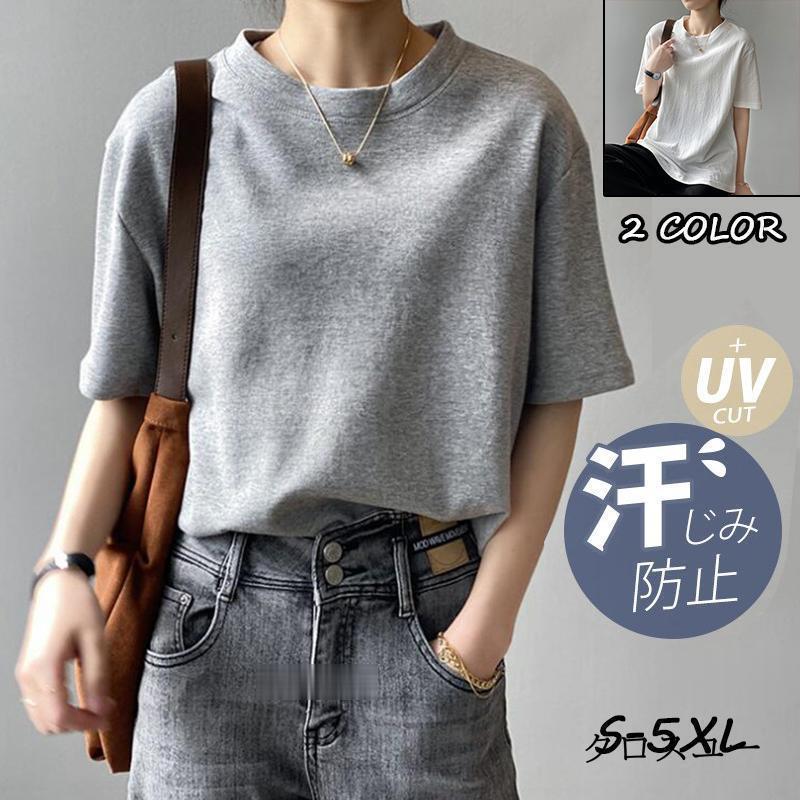 tシャツ レディース 春 夏 半袖 クルーネック 無地 カットソー トップス uvカット ゆったり おしゃれ カジュアル コットン 綿 夏服 シンプル