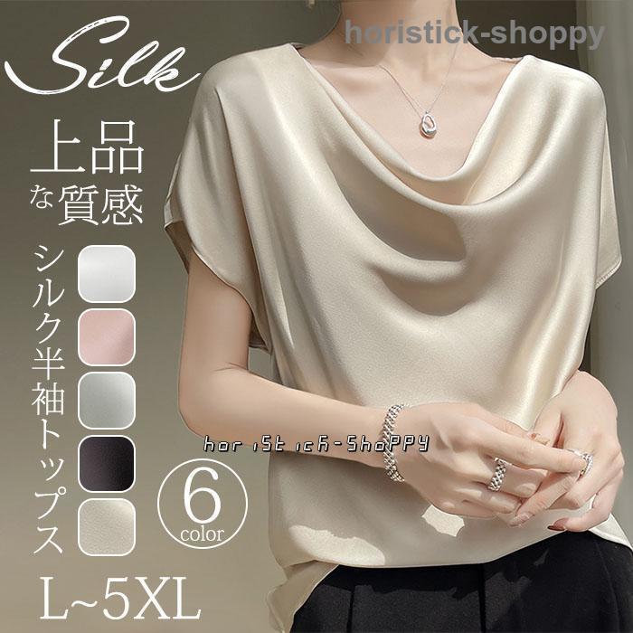 シルク シャツ トップス シャツ 半袖 接触冷感 ネック 絹 夏 チュニック レディース クルーネック 清新感 カジュアル 通勤 日常 母の日 シンプル