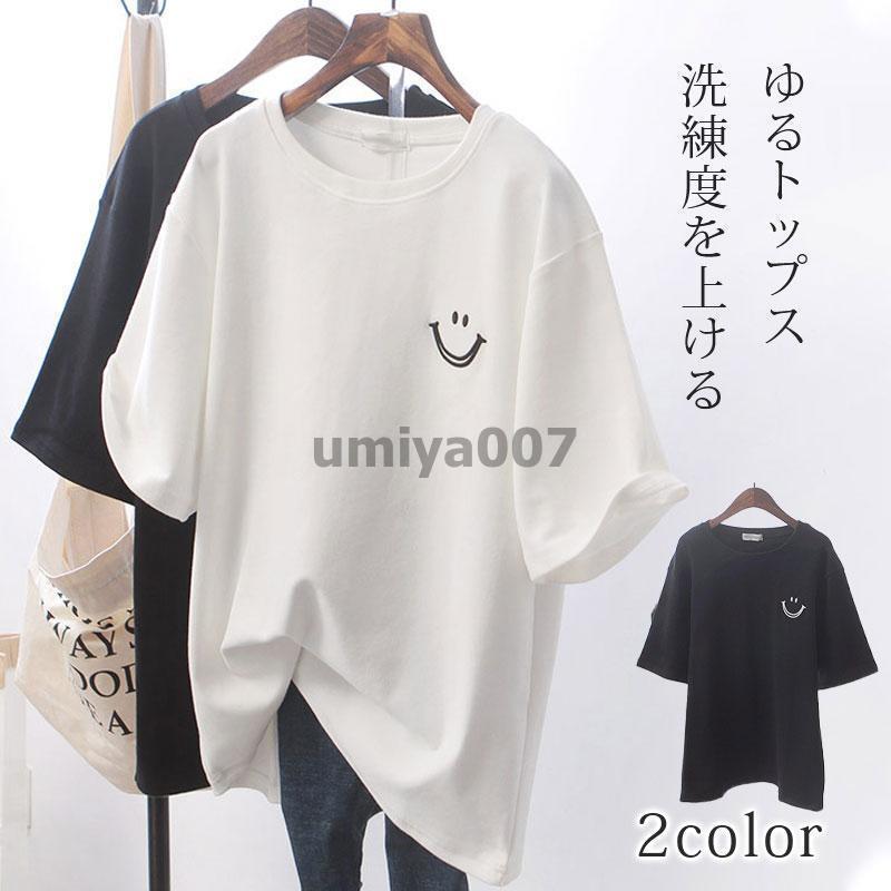 tシャツ レディース 夏 半袖 韓国 ロゴ カットソー Uネック トップス ゆるTシャツ 丸首 プルオーバー プリント ホワイト 白 カジュアル