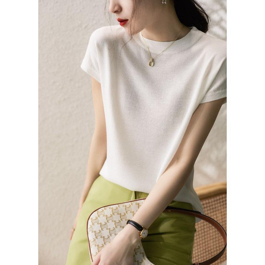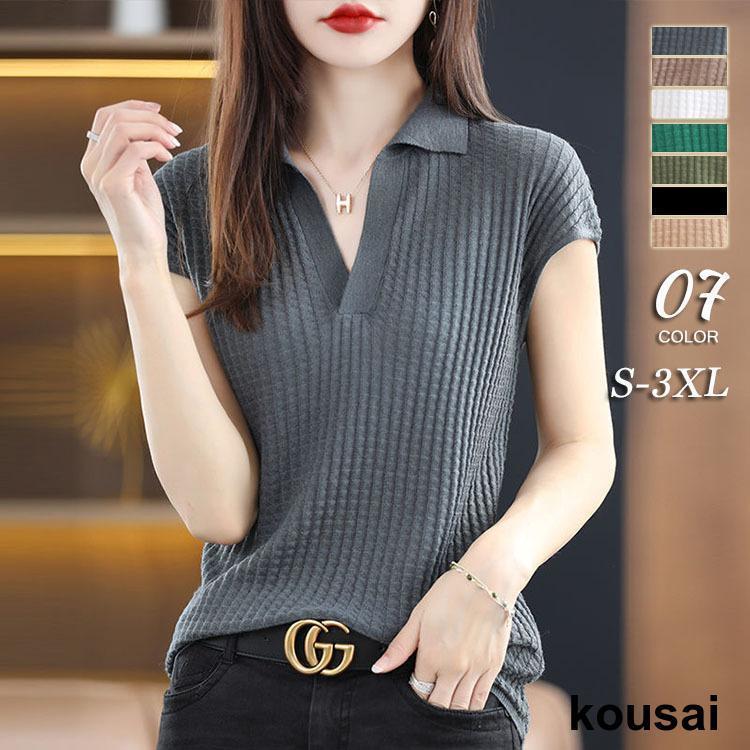 半袖ニット フレンチスリーブ 二の腕カバー トップス パフスリーブ ニット シャツ カットソー 半袖 シンプル 涼しい きれいめ サマーニット