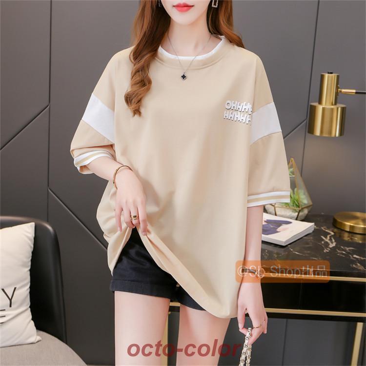 シャツ トップス レディース 切り替え 英字 半袖レディースファッション カットソー ラウンド襟