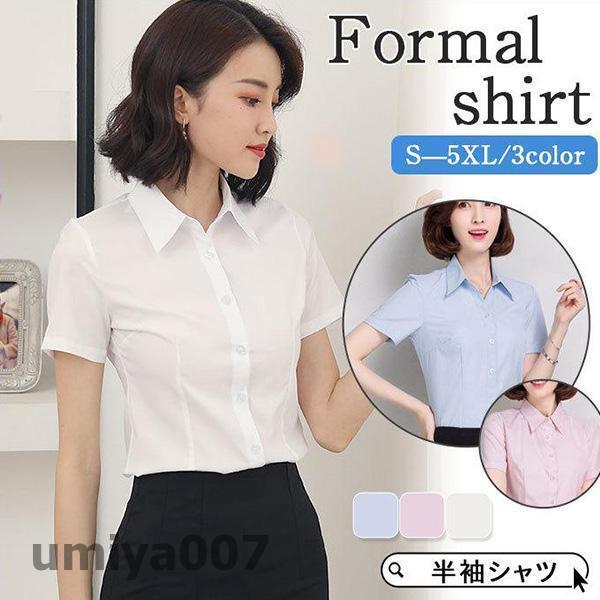 ワイシャツ 半袖 レディース ブラウス シャツ 半袖シャツ ビジネス 事務服 オフィス おしゃれ 通勤 卒業 就活 体型カバー ホワイト 春コーデ 細身