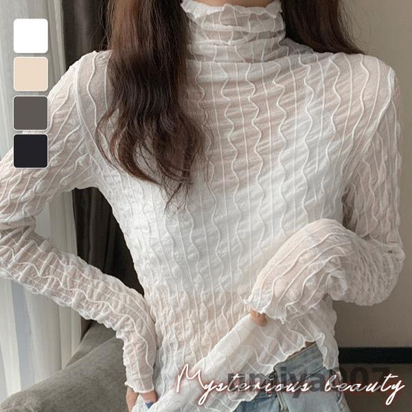 チュール シースルー トップス レディース タートルネック レイヤード セクシー 春 夏 秋 透けレース ブラウス エレガントシャツ 長袖