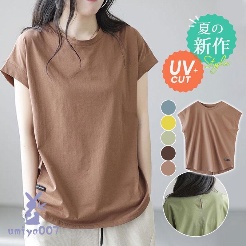 Tシャツ レディース 春 夏 トップス 半袖 tシャツ カットソー プルオーバー インナー ゆったり UVカット シルエット 楽ちん 可愛い 大人
