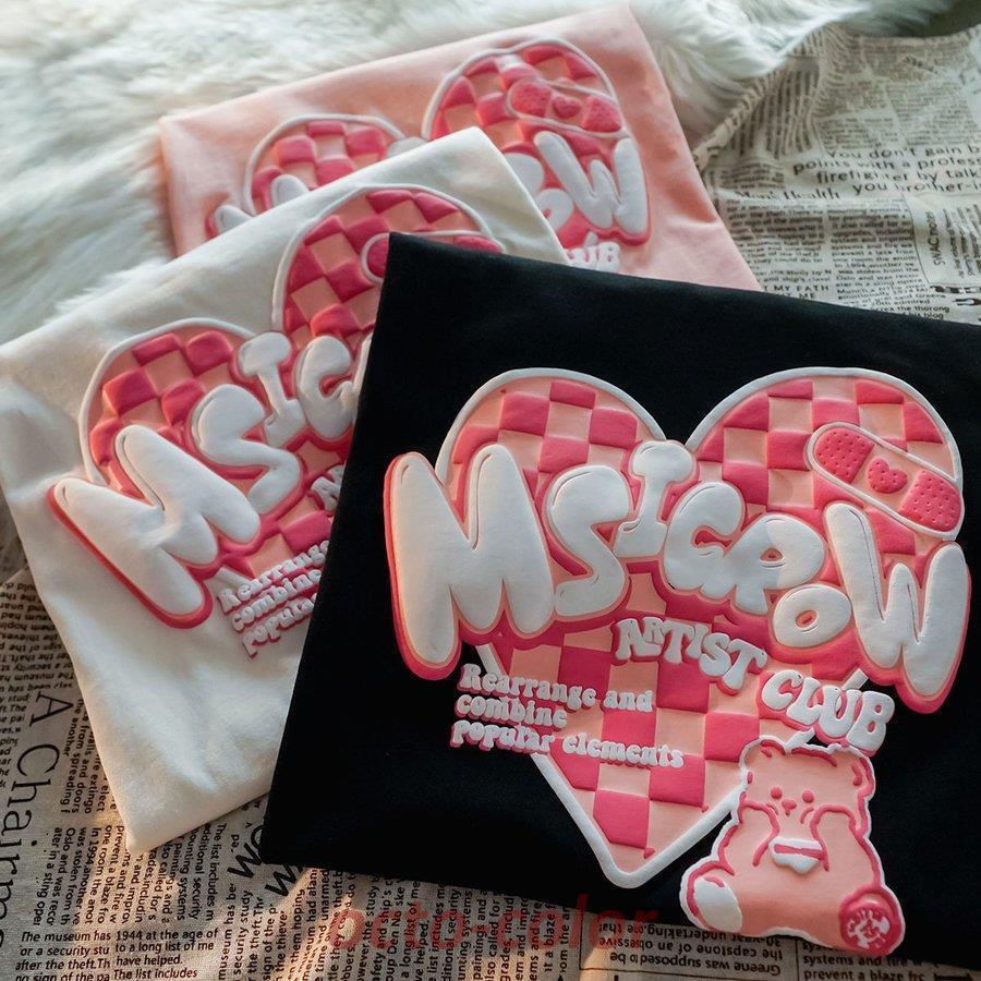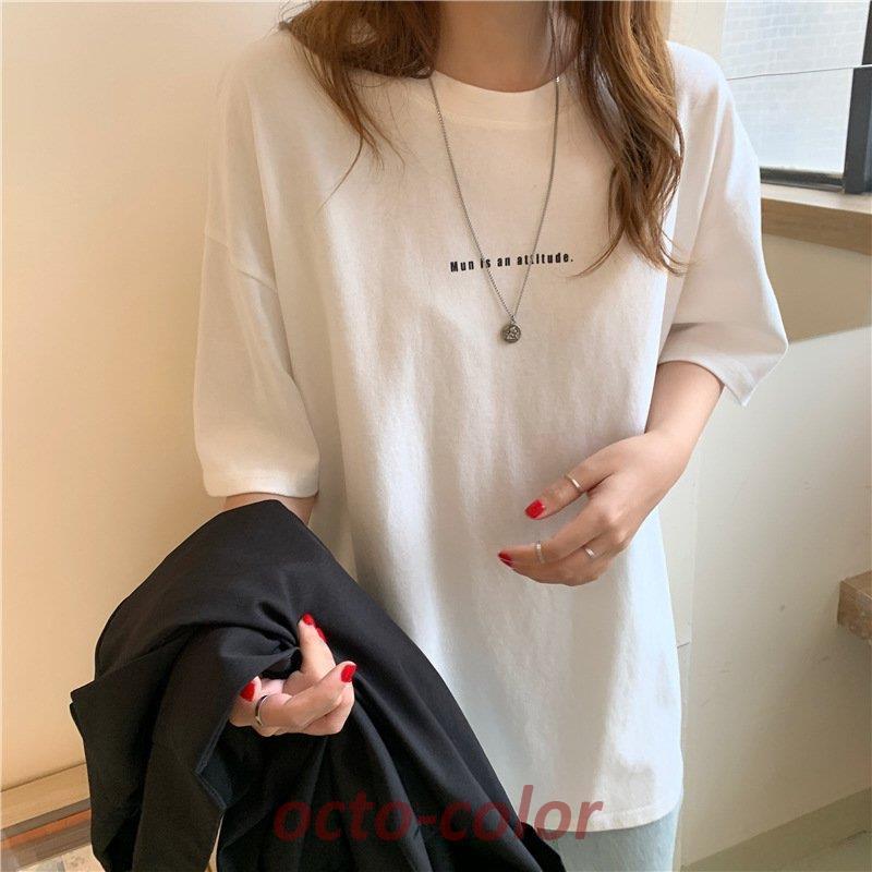 シャツ レディース 夏 半袖 5分袖 韓国 ロゴ カットソー ネック トップス ゆるシャツ プルオーバー カジュアル プリント 丸首