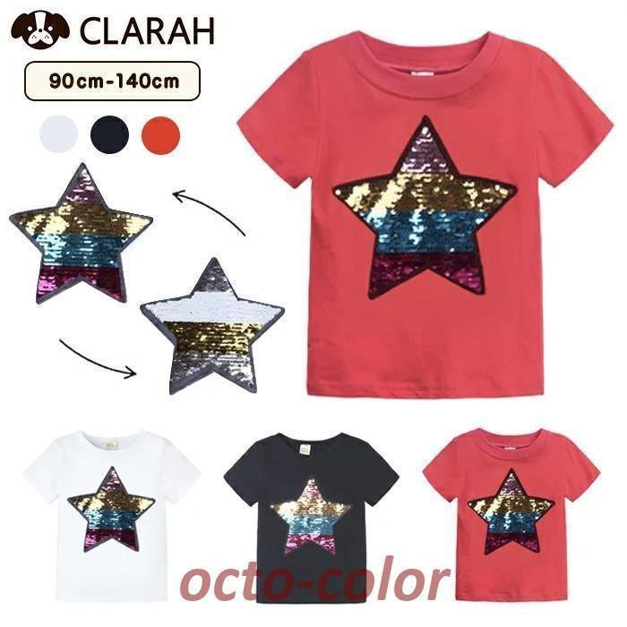 キッズ Tシャツ スパンコール 星 レインボー 変色 トップス 女の子 男の子レディースファッション カットソー 半袖