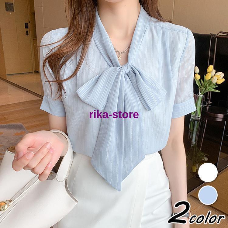 ブラウス レディース 40代 春夏新作 オシャレブラウス 白シフォンシャツ 半袖トップス リボンネック 上品 大人 ゆったり シャツ30代 50代 通勤OL